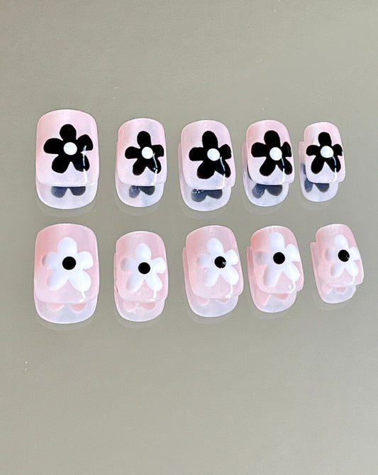 Black and White Halloween Flower Gel Press On Nails