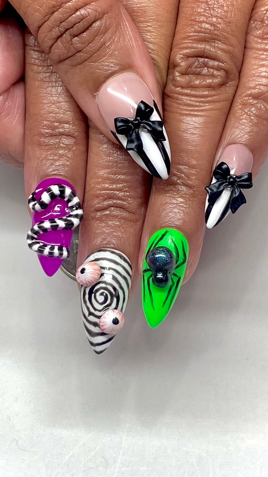 Beetlejuice Inspired Halloween Gel Press On Nails