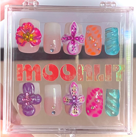 3D Orchid Flower Gel Press On Nails