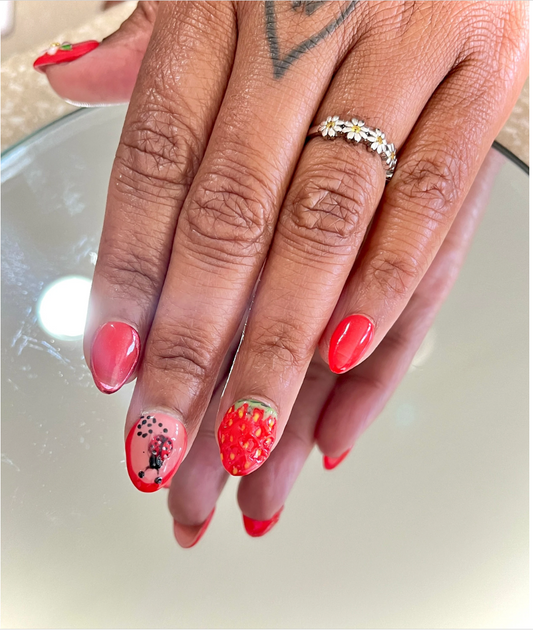 3D Strawberry and Lady Bug Gel Press On Nails